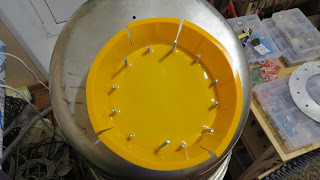Silicone mold turns into a huge gasket between stainless steel vat and an ordinary kettle heater, project "Homebrew"