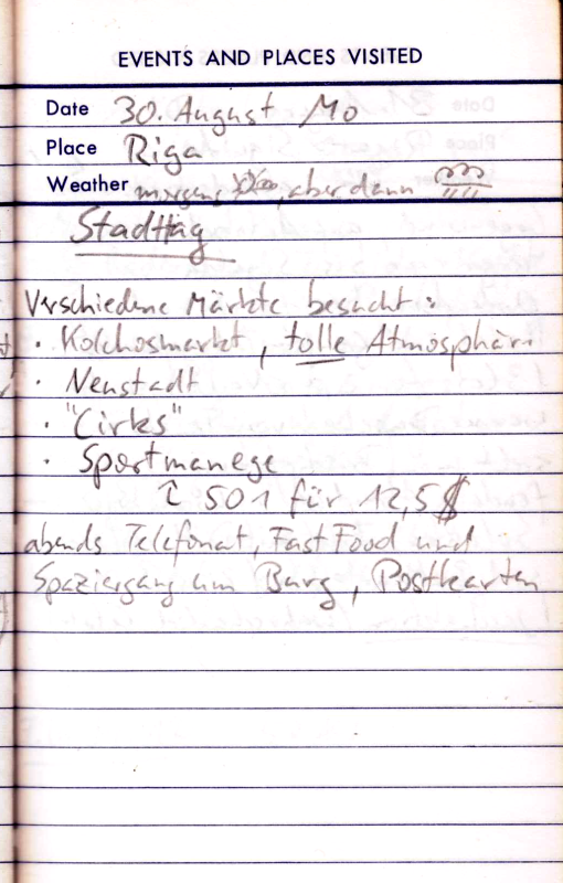 Teils Straße, teils Schlammweg. So kommen wir bis Kolobrzeg. Jetzt rächt sich eine etwas zu naive Planung. Wir hatten nur für die Grenzregion Polens Kartenmaterial mitgenommen und wollten unterwegs für Nachschub sorgen. Nun ist heute Sonntag, kein Geschäft hat auf und wir haben den Kartenrand bald erreicht. Obwohl die Stadt nicht sonderlich hübsch ist, so hat sie doch zumindest einen Campingplatz. Außerdem hoffen wir für den nächsten Morgen auf geöffnete Läden und Landkarten.
