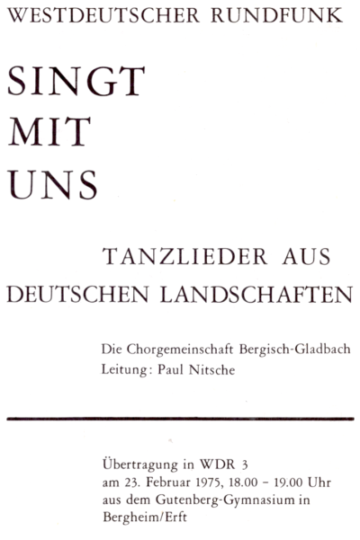 Singt mit uns - Tanzlieder aus deutschen Landschaften