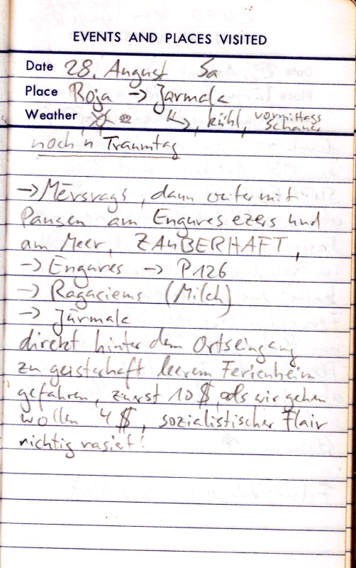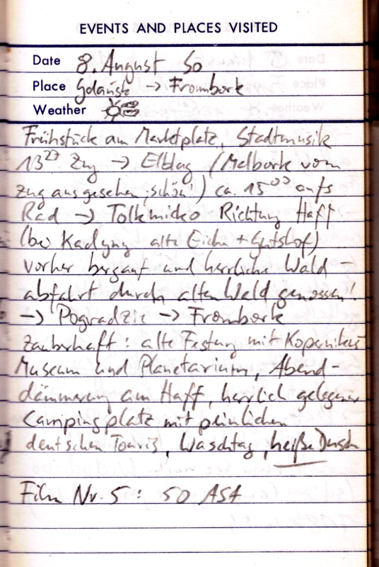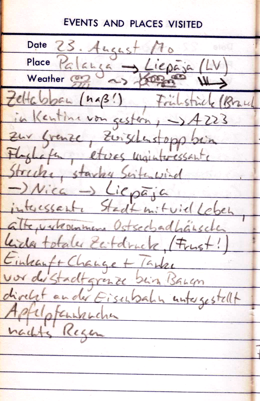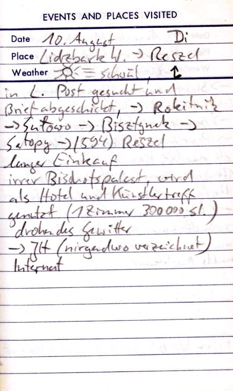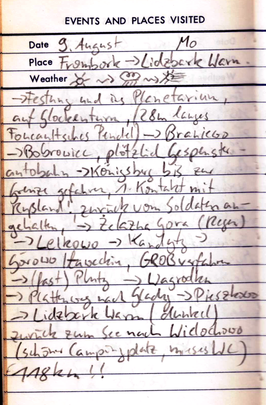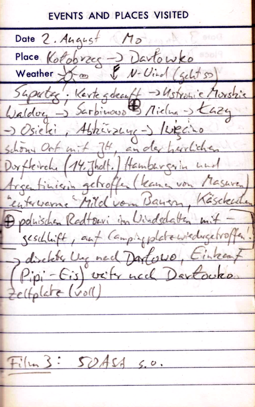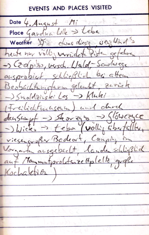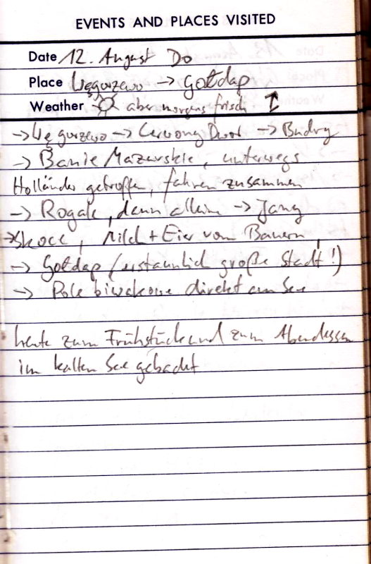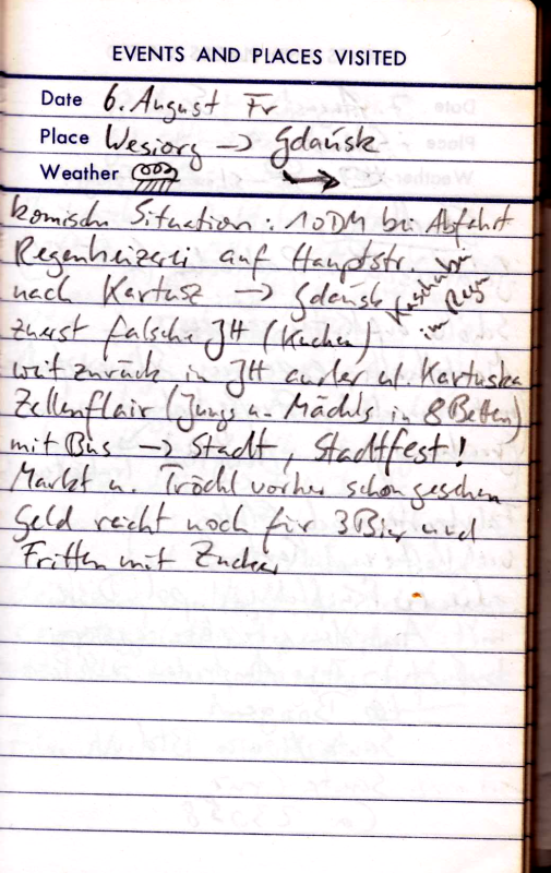 Teils Straße, teils Schlammweg. So kommen wir bis Kolobrzeg. Jetzt rächt sich eine etwas zu naive Planung. Wir hatten nur für die Grenzregion Polens Kartenmaterial mitgenommen und wollten unterwegs für Nachschub sorgen. Nun ist heute Sonntag, kein Geschäft hat auf und wir haben den Kartenrand bald erreicht. Obwohl die Stadt nicht sonderlich hübsch ist, so hat sie doch zumindest einen Campingplatz. Außerdem hoffen wir für den nächsten Morgen auf geöffnete Läden und Landkarten.