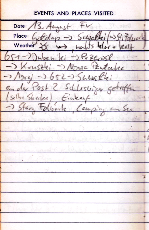 Der Tag startet sehr sonnig. Hinter dem schönen Warnowo verfransen wir uns auf Sandwegen und verpflegen uns später in Meidzwodzie mit Fischfilet, Pommes und Krautsalat. Danach hat uns der Regen erreicht.