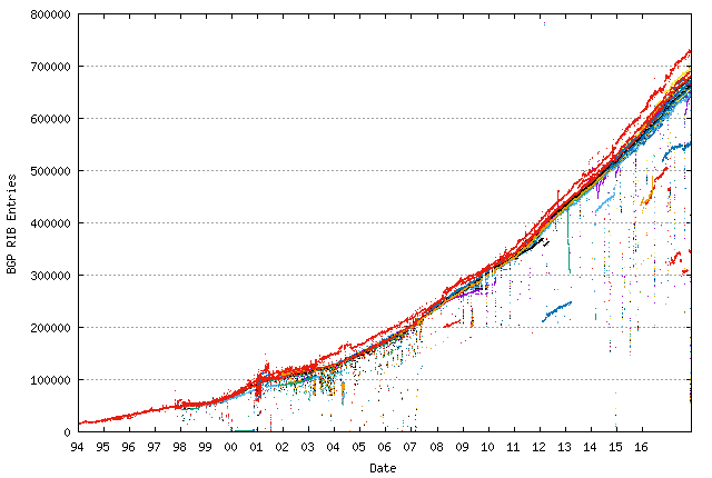 <html> <div class=„separator c1“><a href=„https://2.bp.blogspot.com/-qpong8Zwy4M/Wgz3psGfC5I/AAAAAAAAhYw/wlb4lt8VJfMCaCpTX23wBZiKYZWbQgl8gCEwYBhgL/s1600/2017-10-31%2B11.15.04.jpg“ imageanchor=„1“><img border=„0“ data-original-height=„1440“ data-original-width=„1080“ height=„373“ src=„https://2.bp.blogspot.com/-qpong8Zwy4M/Wgz3psGfC5I/AAAAAAAAhYw/wlb4lt8VJfMCaCpTX23wBZiKYZWbQgl8gCEwYBhgL/s280/2017-10-31%2B11.15.04.jpg“ width=„280“/></a></div> At its core, the Internet is an interconnected fabric of separate networks. Each network which makes up the Internet is operated independently and only interconnects with other networks in clearly defined places. <p>For smaller networks like your home, the interaction between your network and the rest of the Internet is usually pretty simple: you buy an Internet service plan from an ISP (Internet Service Provider), they give you some kind of hand-off through something like a DSL or cable modem, and give you access to „the entire Internet“. Your router (which is likely also a WiFi access point and Ethernet switch) then only needs to know about two things; your local computers and devices are on one side, and the ENTIRE Internet is on the other side of that network link given to you by your ISP.</p> <p>For most people, that's the extent of what's needed to be understood about how the Internet works. Pick the best ISP, buy a connection from them, and attach computers needing access to the Internet. And that's fine, as long as you're happy with only having one Internet connection from one vendor, who will lend you some arbitrary IP address(es) for the extend of your service agreement, but that starts not being good enough when you don't want to be beholden to a single ISP or a single connection for your connectivity to the Internet.</p> <p>That also isn't good enough if you *are* an Internet Service Provider so you are literally a part of the Internet. You can't assume that the entire Internet is <em>that</em> way when half of the Internet is actually in the other direction.</p> <p>This is when you really have to start thinking about the Internet and treating the Internet as a very large mesh of independent connected organizations instead of an abstract cloud icon on the edge of your local network map.<br/></p> <h3 class=„c2“>Which is pretty much never for most of us.</h3> Almost no one needs to consider the Internet at this level. The long flight of steps from DSL for your apartment up to needing to be an integral part of the Internet means that pretty much regardless of what level of Internet service you need for your projects, you can probably pay someone else to provide it and don't need to sit down and learn how <a href=„https://en.wikipedia.org/wiki/Border_Gateway_Protocol“ target=„_blank“>BGP</a> works and what an <a href=„https://en.wikipedia.org/wiki/Autonomous_system_(Internet)“ target=„_blank“>Autonomous System</a> is.<br/><h3 class=„c2“>But let's ignore that for one second, and talk about how to become your own ISP.</h3> To become your own Internet Service Provider with customers who pay you to access the Internet, or be your own web hosting provider with customers who pay you to be accessible from the Internet, or your own transit provider who has customers who pay you to move their customer's packets to other people's customers, you need a few things:<br/><ol><li>Your own public IP address space allocated to you by an Internet numbering organization</li> <li>Your own Autonomous System Number (ASN) to identify your network as separate from everyone else's networks</li> <li>At least one router connected to a different autonomous system speaking the Border Gateway Protocol to tell the rest of the Internet that your address space is accessible from your autonomous system.</li> </ol><div>Once your router tells other networks that you're now the home of some specific range of IP addresses, and that advertisement propagates out through the rest of the Internet, everyone else's routers will have an entry in their routing tables so if they see any packets with your address on them, they know which direction to send them so they eventually end up at your door step.</div> <h3 class=„c2“>Wait, but why don't you need any of this for your home Internet?</h3> <div>So why doesn't your home router need to speak BGP or you need to own public IP space to be reachable from the rest of the Internet? Because your ISP takes care of that for you. In addition to funding the wiring from their data center to your house, the $50/month you pay to your ISP funds them getting address space allocated for you, advertising it to the rest of the Internet, and getting enough connectivity to the rest of the Internet that your packets can get where they're headed.</div> <div><br/></div> <div>The same answer is true on the other end when you spin up a web server somewhere like <a href=„https://m.do.co/c/216add87bf10“ target=„_blank“>Digital Ocean</a> or Amazon Web Services; they handle IP addressing and BGP for you so all you need to worry about is setting up the software for your own corner of the Internet on the one specific address they set aside for you from their big pools of addresses that they manage.</div> <div> <h3 class=„c2“>Wait, but why am I blogging about BGP then?</h3> </div> <div>If you've made it this far, you're probably pretty curious why I'm talking about BGP at all, and what this blog post is leading up to.&#160;</div> <div><br/></div> <div>So… I recently set up my own autonomous system… and I don't really have a fantastic justification for it…</div> <div><br/></div> <div>My motivation was twofold:</div> <ol><li>One of my friends and I sat down and figured it out that splitting the cost of a rack in <a href=„http://he.net/colocation.html“ target=„_blank“>Hurricane Electric's FMT2 data center</a> marginally lowered our monthly hosting expenses vs all the paid services