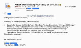 <br/><a name=„prism“> </a> <p><span>PRISM</span></p><p>A <a href=„https://wikileaks.org/bnd-inquiry/docs/BND/MAT_A_BND-1-5.pdf“ target=„_blank“>large file</a> from the commission documents is about the reaction on the revelation of PRISM. In August 2013, members of the Bundestag asked so many questions about this NSA program, that one BND employee complained that it was unreasonable to expect that his agency could provide all the answers.</p><p>At that time, many details about PRISM weren't clear yet and statements from the US government and from internet companies seemed to contradict eachother. Among the documents that BND forwarded to the parliamentary commission was also one report from July 2013, which summarizes what was known about PRISM at that time.</p><p>This report was made by civil servants from unit ÖS I 3 of the Public Safety division of the German Interior Ministry (BMI). After summarizing what was known from the press reports, the report also describes a second tool that is named PRISM - based upon an <a href=„http://electrospaces.blogspot.com/2013/06/is-prism-just-not-so-secret-web-tool.html“>earlier article</a> on this weblog:</p><p/><div class=„separator“ style=„clear: both; text-align: center;“><a href=„https://4.bp.blogspot.com/-TVr3VLMcYGg/WETU3Y3cFTI/AAAAAAAADS8/2clyRogxKCkwIbgEPxrWhmlhPjMkKpKrgCLcB/s1600/bnd-electrospaces.jpg“ imageanchor=„1“ style=„“ target=„_blank“><img border=„0“ src=„https://4.bp.blogspot.com/-TVr3VLMcYGg/WETU3Y3cFTI/AAAAAAAADS8/2clyRogxKCkwIbgEPxrWhmlhPjMkKpKrgCLcB/s280/bnd-electrospaces.jpg“ width=„280“/></a><br/><span> Summary of a second PRISM program as described on this weblog<br/><span>(source: <a href=„https://wikileaks.org/bnd-inquiry/docs/BND/MAT_A_BND-1-5.pd“ target=„_blank“>Wikileaks</a>, pdf-page 104 - click to enlarge)</span> </span> </div> <p>Shortly after the existance of PRISM was revealed early June 2013, much was unclear, so I did some open source research and found that the US military uses a program named PRISM, which in this case is an acronym for „Planning tool for Resource Integration, Synchronization and Management“.</p><p>Shortly afterwards, in July 2013, German press published an NSA letter saying that there are actually <a href=„http://electrospaces.blogspot.com/2013/07/nsa-says-there-are-three-different.html“>three different programs</a> with the name PRISM: one that collects data from the big internet companies, one that is used as a military tasking and planning tool, and finally one that is used for internal data sharing in NSA's Information Assurance Directorate (IAD).</p><p><a name=„boundless“> </a> </p><p><span>BOUNDLESSINFORMANT</span></p><p>On July 29, 2013, the German magazine Der Spiegel published a chart from the NSA tool <a href=„https://en.wikipedia.org/wiki/Boundless_Informant“ target=„_blank“>BOUNDLESSINFORMANT</a>. The chart was related to Germany and it was thought that it showed that NSA had intercepted over 550 million pieces of communications traffic.</p><p>But within just a few days, BND contacted Der Spiegel, saying that <i>they</i> collected those data, and shared them with NSA. The <a href=„http://electrospaces.blogspot.com/p/sigint.html“>SIGADs</a> US-987LA and US-987LB designated collection at the BND satellite station in Bad Aibling and interception of phone calls in Afghanistan, respectively. This was confirmed by NSA and published by Der Spiegel on August 5, 2013.</p><p>A <a href=„https://wikileaks.org/bnd-inquiry/docs/BND/MAT%20A%20BND-1-13d.pdf“ target=„_blank“ title=„See pdf-page 124“>document</a> published by Wikileaks explains that in Afghanistan, BND had a satellite interception facility (for downlinks to complement the uplinks intercepted at Bad Aibling) and also intercepted point-to-point microwave links (generally used for (mobile) telephony backbones).</p><p/><div class=„separator“ style=„clear: both; text-align: center;“><a href=„http://1.bp.blogspot.com/-W66ZWknVuLw/VLnJbvaL6QI/AAAAAAAACJ0/PjkJ6dm-4NY/s1600/boundless-germany.jpg“ imageanchor=„1“ style=„“ target=„_blank“><img border=„0“ src=„http://1.bp.blogspot.com/-W66ZWknVuLw/VLnJbvaL6QI/AAAAAAAACJ0/PjkJ6dm-4NY/s280/boundless-germany.jpg“ title=„BOUNDLESSINFORMANT screenshot showing metadata related to Germany“ width=„280“/></a><br/><span> BOUNDLESSINFORMANT screenshot showing metadata related to Germany<br/> as being published by Der Spiegel on July 29, 2013<br/><span>(click to enlarge)</span> </span> </div> <p>An e-mail published by Wikileaks <a href=„https://wikileaks.org/bnd-inquiry/docs/BND/MAT%20A%20BND-1-11a.pdf“ target=„_blank“ title=„See pdf-page 33“>shows</a> that meanwhile, M.J. from unit 3D3D of the Bad Aibling station was comparing the numbers from the BOUNDLESSINFORMANT chart with those from his logfiles and <a href=„https://en.wikipedia.org/wiki/Nagios“ target=„_blank“>Nagios Checks</a>. In the e-mail, from August 12, 2013 to his boss R.U., he concluded that at the beginning of the month there was a relatively clear similarity with the chart from Der Spiegel:</p><p/><div class=„separator“ style=„clear: both; text-align: center;“><a href=„https://2.bp.blogspot.com/-mqzOWZ--xzs/WEZ2VOR1uBI/AAAAAAAADTs/E4HeLUAKgSQQBAOyXzXB-OYK7x4Iqo4RgCLcB/s1600/bnd-boundless-vergleich.jpg“ imageanchor=„1“ style=„“ target=„_blank“><img border=„0“ src=„https://2.bp.blogspot.com/-mqzOWZ--xzs/WEZ2VOR1uBI/AAAAAAAADTs/E4HeLUAKgSQQBAOyXzXB-OYK7x4Iqo4RgCLcB/s280/bnd-boundless-vergleich.jpg“ width=„280“/></a><br/><span> The chart that seems to be prepared by BND employee M.J. to compare<br/> with the one from BOUNDLESSINFORMANT (note the different scale)<br/><span>(click to enlarge)</span> </span> </div> <p>It should be noted that BND <a href=„https://wikileaks.org/bnd-inquiry/docs/BND/MAT%20A%20BND-1-11c.pdf“ target=„_blank“ title=„S